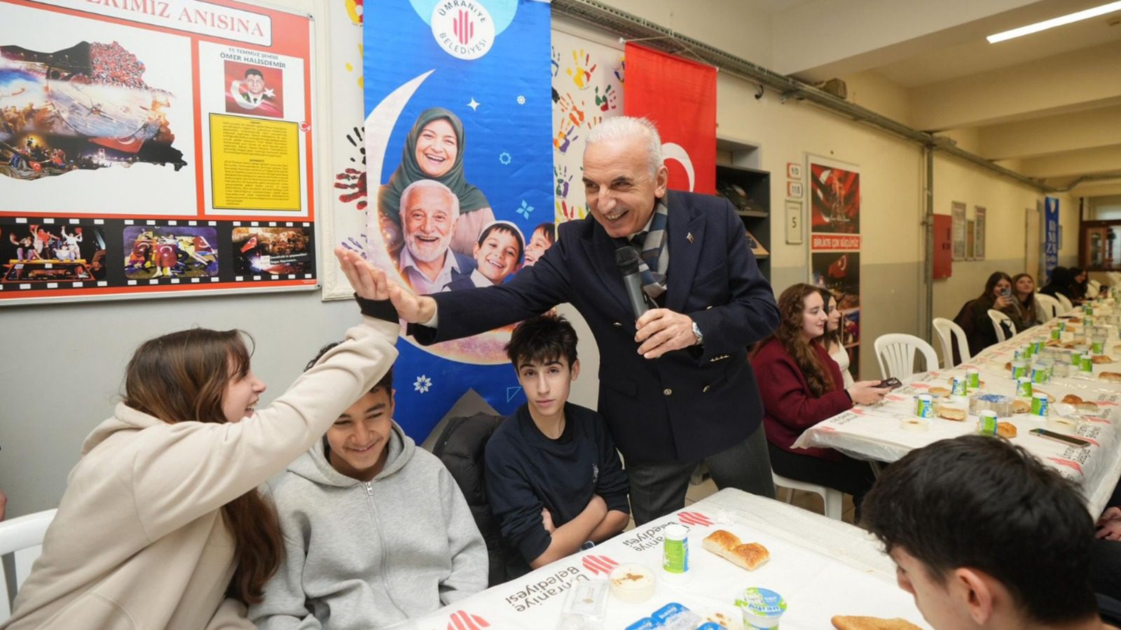 Ümraniye Belediye Başkanı İsmet Yıldırım, Ramazan ayının ilk haftasında ilçedeki üç farklı okuldan yaklaşık 1.400 öğrenciyle iftar sofrasında buluştu. Başkan Yıldırım, gençlerle sohbet ederek Ramazan’ın birlik ve beraberlik mesajını paylaştı.