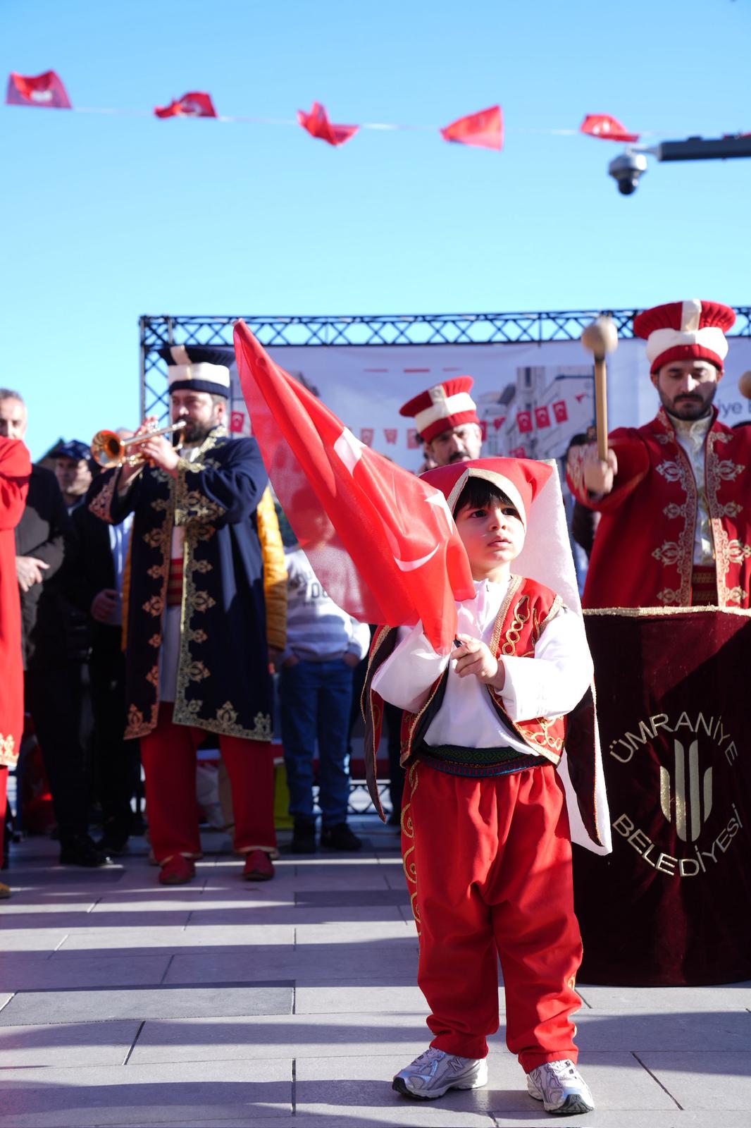 Alemdağ Caddesi’nde başlayan mehteran yürüyüşü, marşlar eşliğinde ilerleyerek Ümraniye Meydanı’na kadar devam etti. Cadde boyunca vatandaşların alkışlarıyla karşılanan mehteran takımı, meydanda gerçekleştirdiği performansla izleyenlere adeta görsel ve işitsel bir şölen sundu. Özellikle çocuklar ve ailelerin yoğun katıldığı program, renkli ve coşkulu görüntülere sahne oldu.